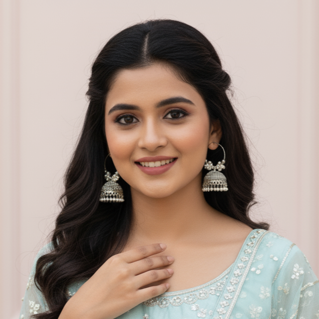 - Detailed Jhumka Work - Traditional geometric patterns with intricate craftsmanship